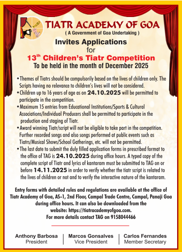 Joao Agostinho Fernandes hailing from Margao, Salcete who wrote and directed numerous Tiatrs and gave a high standard of excellence to the Tiatr Stage. He even published his Tiatr manuscripts in book form over hundred years back. He was rightly called the ‘Father of Tiatr’.