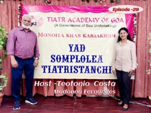 The late tiatr artiste remembered under TAG’s programme Yad Somplolea Tiatristanchi in the month of January 2025 were Lucasinho Ribeiro, Mary Vaz, Alex Piedade Fernandes (Alex Mestri), Tony Friend, Xavier Fernandes, Srirang Narvekar, Julio Hilario Purificacao Rodrigues (Jr. Rod), Richardo Vincent Rodrigues (Rico Rod), Guilhermina Leitao (Meena Leitao), Agnelo A. F. Dias, Cajetan Francis Pinto (Caiti), Francisco Bringel (Young Chico), Wilma Pacheco and Johnson Pereira. The anchors for the programme were William Fernandes and Luiza Fernandes.